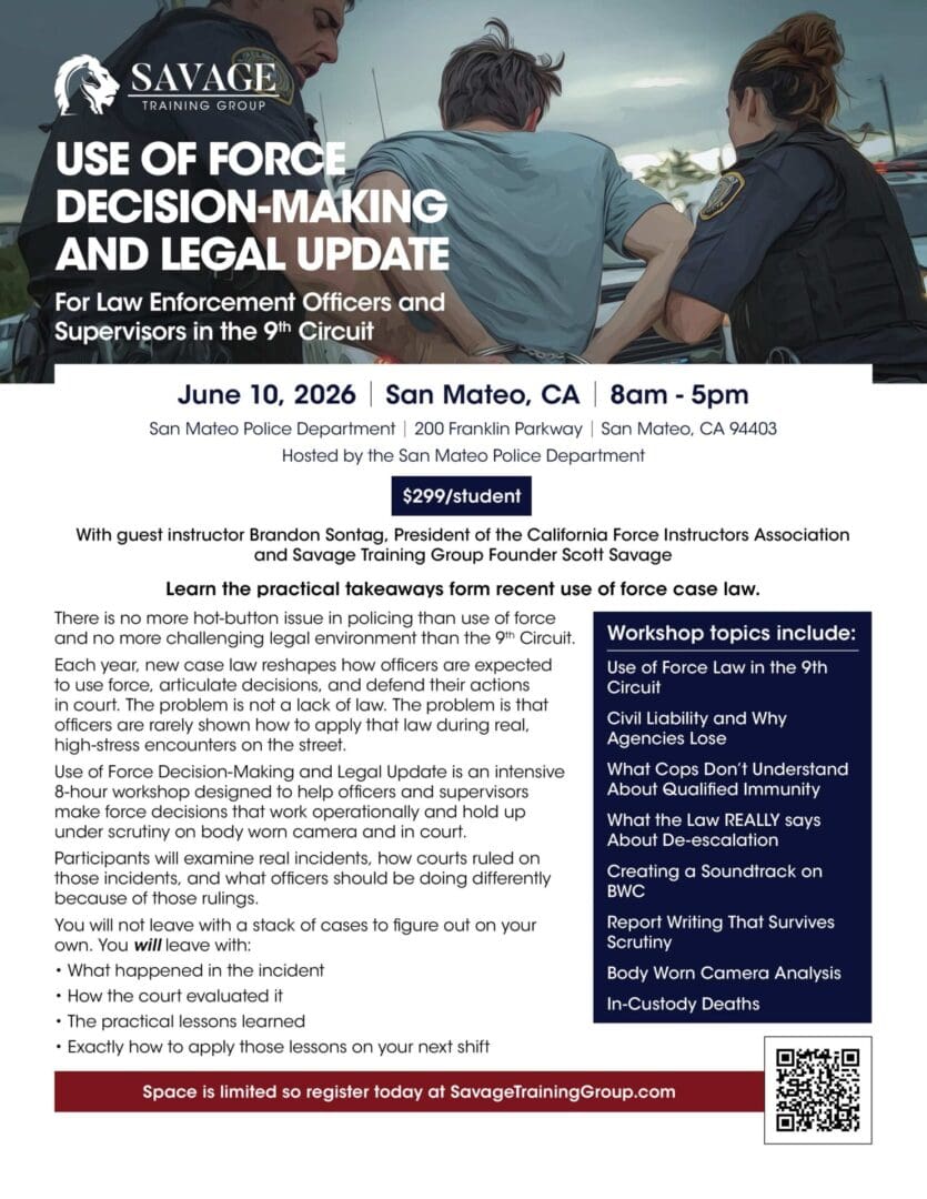 Savage Training Group – Use of Force Decision Making and Legal Update