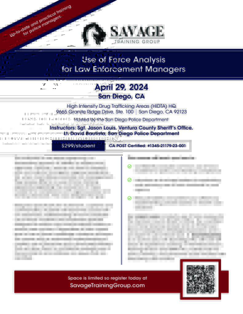 Use of Force Analysis for Law Enforcement Managers – Savage Training Group